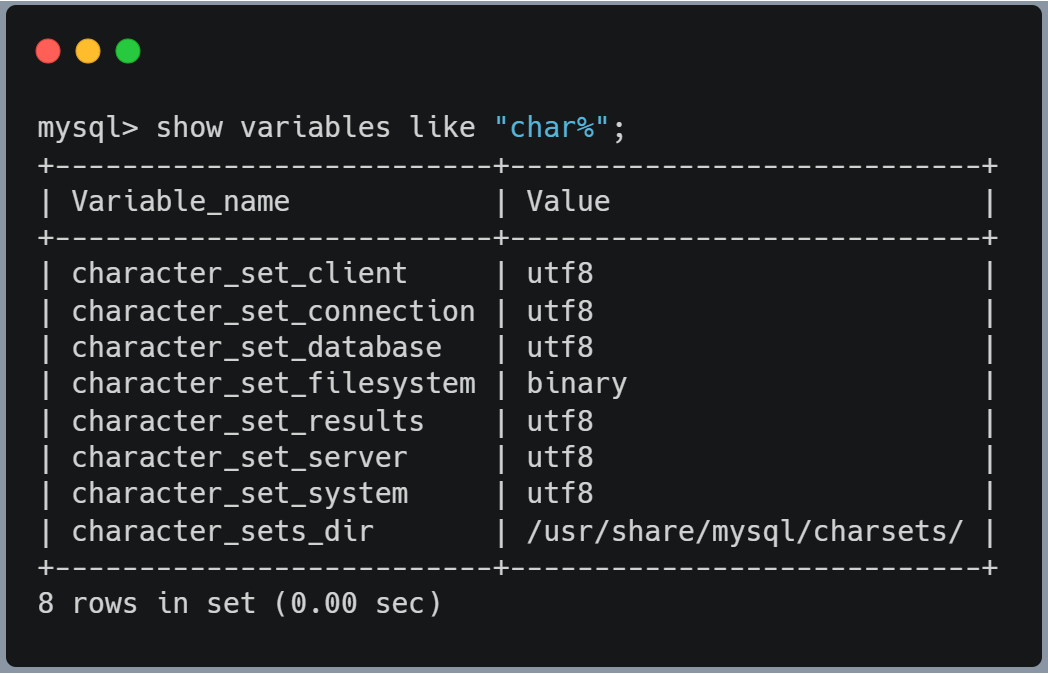 show variables like "char%";
